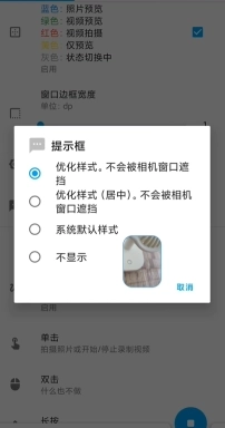 6、当然也是可以设置提示框的,这边有四个选项,里面包括:优化样式,不会被相机窗口遮挡;优化样式(居中),不会被相机窗口遮挡;系统默认样式或者是不显示。