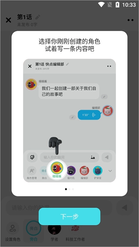 5、确定好后就会在页面上增加各个角色头像了,然后点击页面右上角的【下一步】