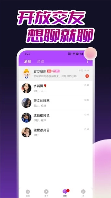 淘春视频聊天,由真实人工进行审核,全程打造绿色交友平台。这里的所有用户均通过实名认证,同时,我们会对部分资料进行安全保护,绝不泄露。平台支持同城附近随机配对,拥有语音、视频、文字等多样化聊天方式,助你打开心扉,释放甜蜜能量。随时随地,在这享受开放式自由交友,畅聊无阻。