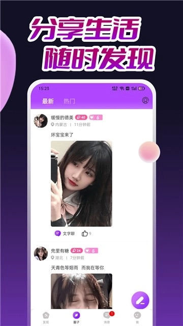 1.随时可以自由的参与互动聊天,还可以在社区里面分享自己的生活动态,快速结识到更多好友;