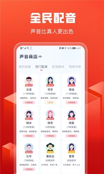 全民配音,拥有众多声线的声优主播供你随意挑选。在这里,能随时满足你各类配音需求,无论是企业办公、摆摊叫卖,还是专业配音,超多生活与工作场景都能灵活适配。我们随时为广大用户打造一个自由自在的配音广场,全民配音艺术网全方位满足你的配音要求。全民配音手机版可下载安装,涵盖二次元游戏、动画片、广播剧、情感电台、有声书、少儿读物等丰富类型,一应俱全。
