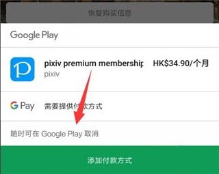 点击后便会显示付款方式,若尚未注册,付款方式将为空,因此需点击下方的“添加”。