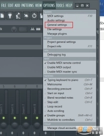 打开flstudio编曲软件,选择顶部菜单栏“OPTIONS”-“General setting”,即可打开常规设置窗口。