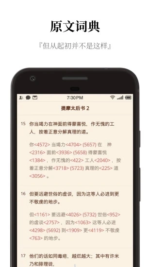 快速参照原文词典,领悟圣经本意。此外,还有希伯来文及希腊文原文可供研读。