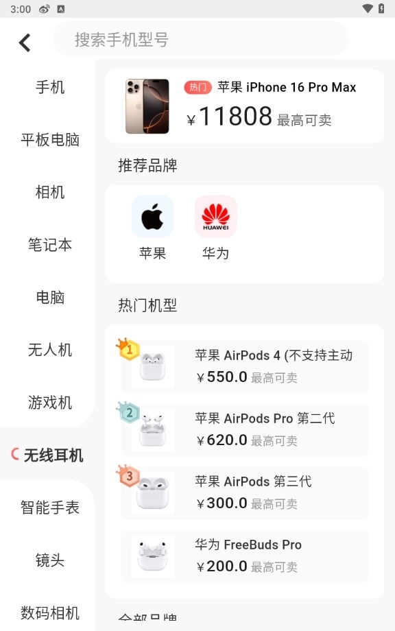 3、在【估价】页面,我们可以看到各类机型的最高回收价格。不过,实际价格或许会因具体情形而有所差异。