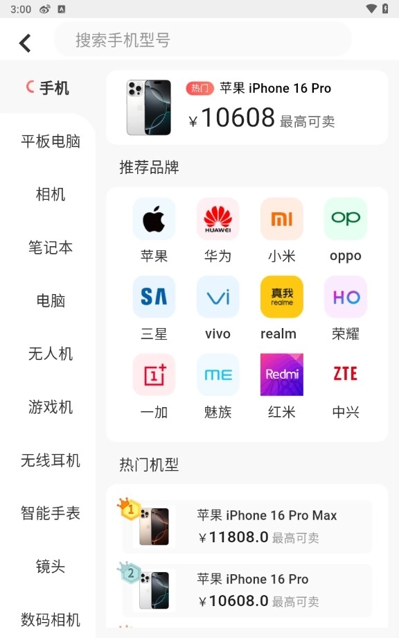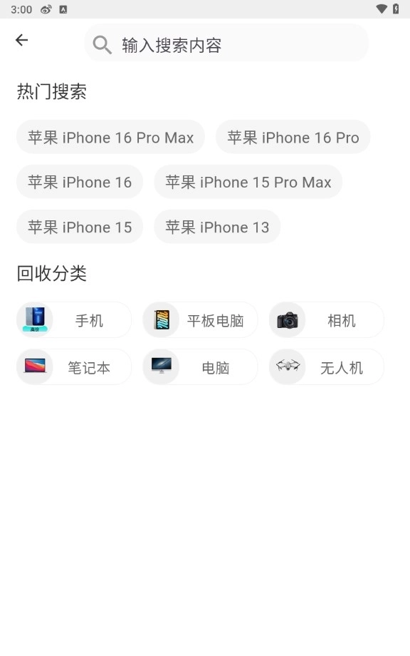 1、当进入软件的【首页】,便能看到诸如手机、笔记本、平板、相机等常见的回收品类。