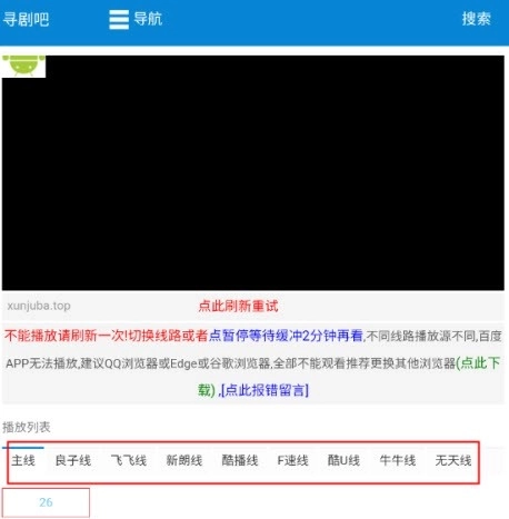 2、你可以尝试切换不同的播放线路。播放页面为用户准备了多个播放线路,像主线、良子线、飞飞线等等,不妨切换线路试试看。