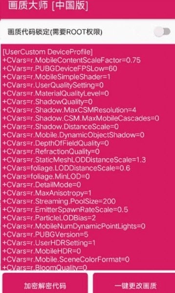 支持全版本,丰富画质代码随心挑,唤醒手机潜能,一键轻松解锁全开画质!助您畅快“吃鸡”,心情愉悦~
