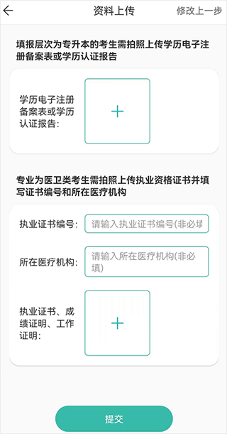 医卫类专业考生需要上传医师资格证或护士资格证