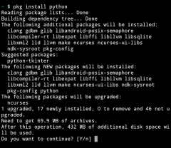 在 Termux 中输入 pkg install python 回车安装Python,出现如下图。