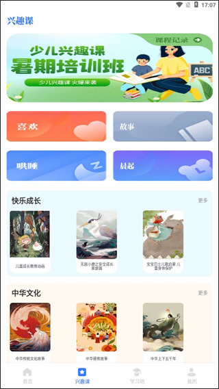 6、点击进入兴趣课,用户可以在这里全面进行学习,培养孩子的兴趣。