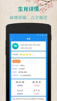 1、支持十二生肖年份查询,今日运势,五行分析,幸运数字等;