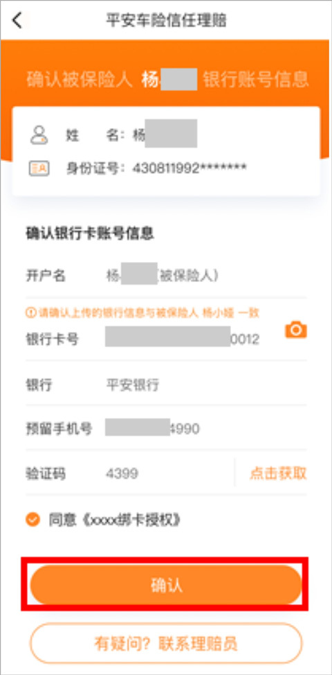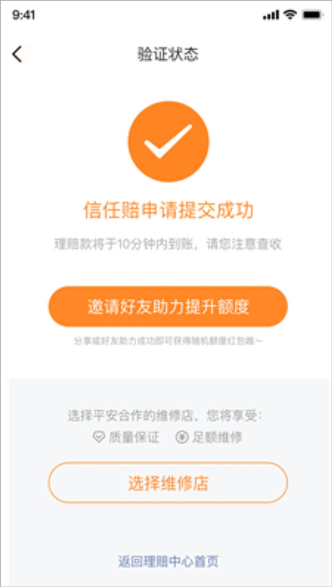 第五步:信任赔申请提交成功,等待理赔款到账信息
