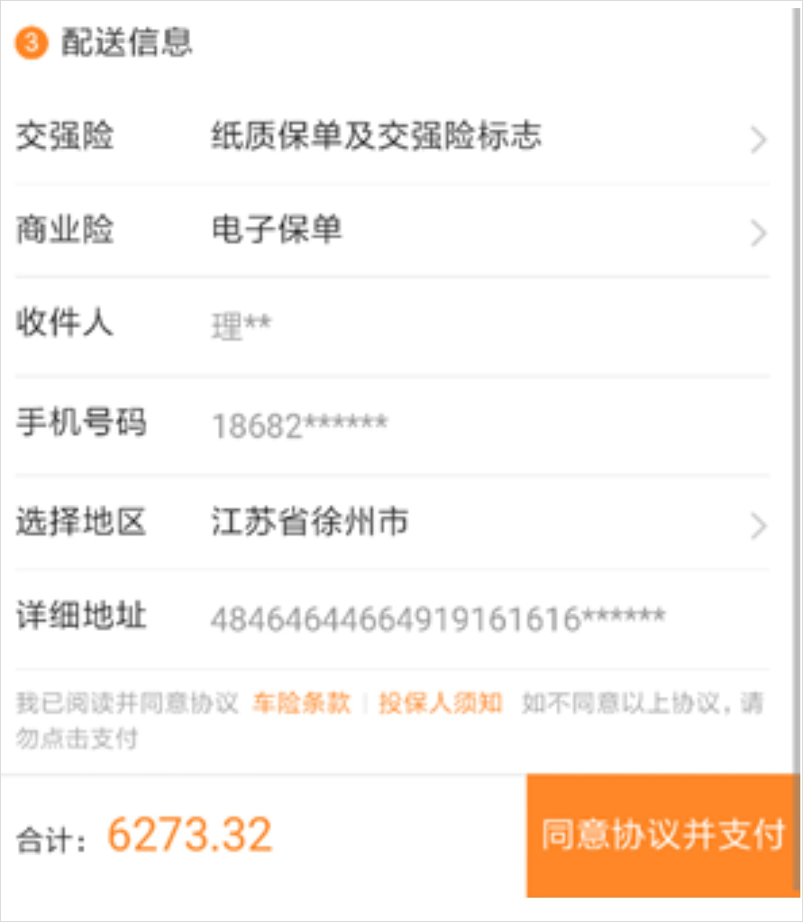 车辆行驶证信息、车主&投保人&被保险人的身份证件信息、保单配送信息