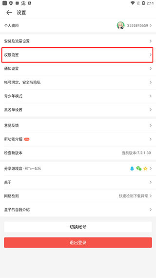 2、进入“设置”界面后,点击进入“权限设置”,如图所示。