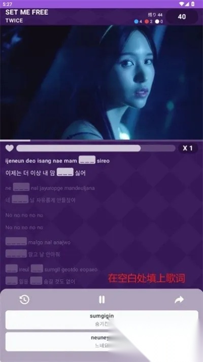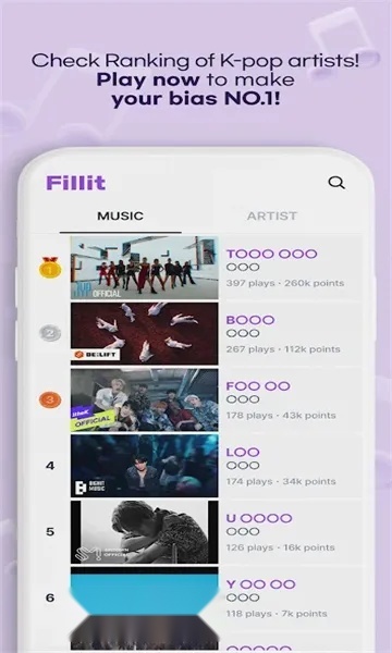 1、Fillit最新手机版,是专门为韩团粉丝打造的韩语歌词学习平台。它巧妙结合音乐游戏与语言学习,助力提升韩语听力,丰富词汇储备。