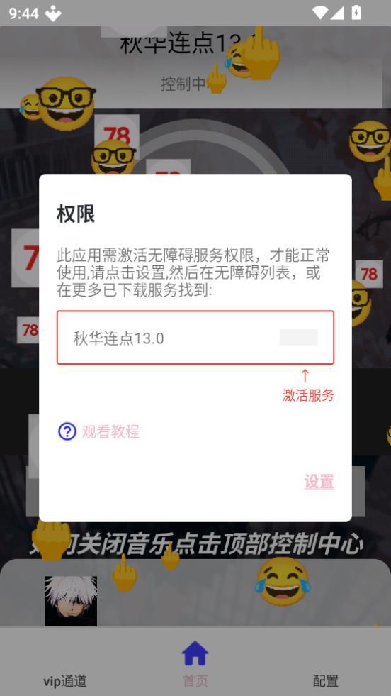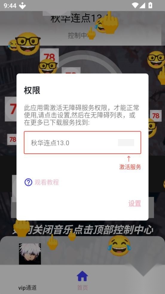 2、需要开启该服务,然后返回到主屏幕,权限设置便完成了。