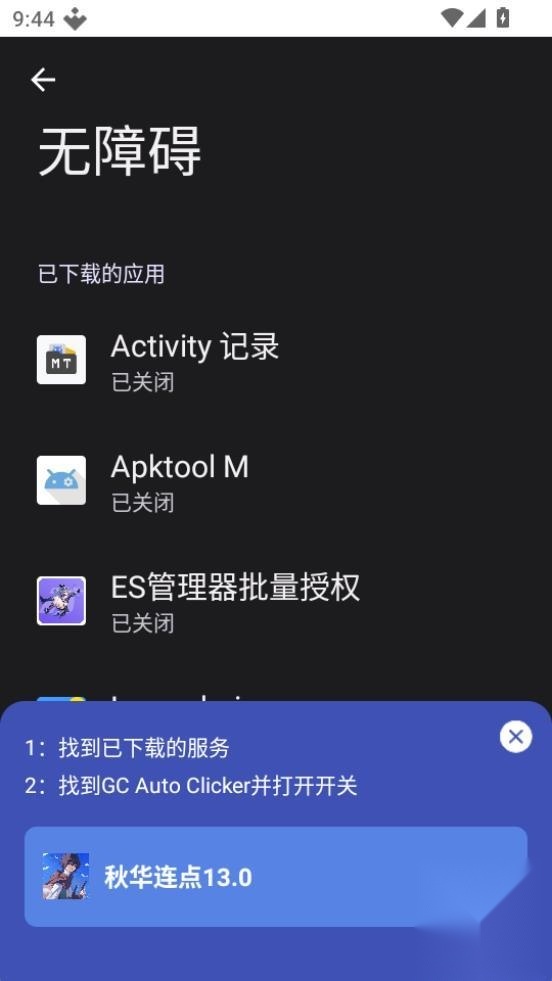 2.先禁用“无障碍服务”,再重新开启“无障碍服务";
