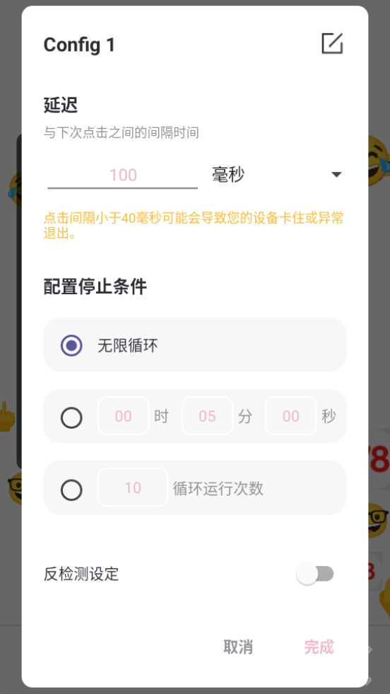 1.当设置小于40毫秒的间隔时,它往往会崩溃。我们建议您在短时间内快速点击。