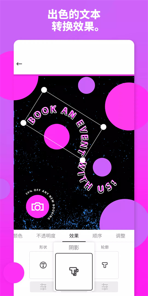 2、文字效果——借助阴影、轮廓与剪裁效果激发创意灵感。无论是单独运用某一种效果,还是将多种效果巧妙融合,都能打造出极具视觉冲击力的文字样式。