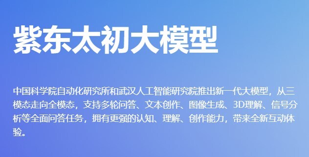 紫东太初是由中国科学院自动化研究所与武汉人工智能研究院联合打造的新一代大模型,它实现了从三模态到全模态的跨越,可支持多轮问答、文本创作、图像生成、3D理解、信号分析等各类综合问答任务,具备更为强大的认知、理解与创作能力,能为用户带来全新的互动体验。