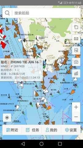软件提供海图、天地图、卫星图的显示,用户可以随时查询附近船舶和通航要素。