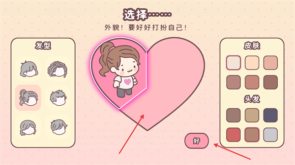 在形象外观的选择界面中,你可以先从【发型】分类下挑选喜欢的发型样式,接着在【皮肤】分类里找到【头发】子项来选择合适的头发颜色,等调整好发型和发色后,点击界面上的【好】按钮,就能完成这次的形象设置确认了。