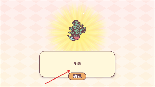 3、获取【多肉】道具后,点击弹窗里的【确认】按钮,就能把该道具存进背包,以便后续进行房间装饰布置时使用。