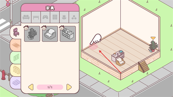 4、进入【家具】界面,选择对应家具样式,拖动到房间内的目标位置,即可完成家具的摆放与房间装饰。
