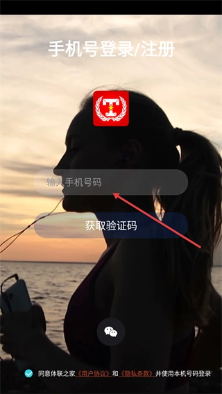 2、在手机号登录/注册页面的输入框中输入手机号码。