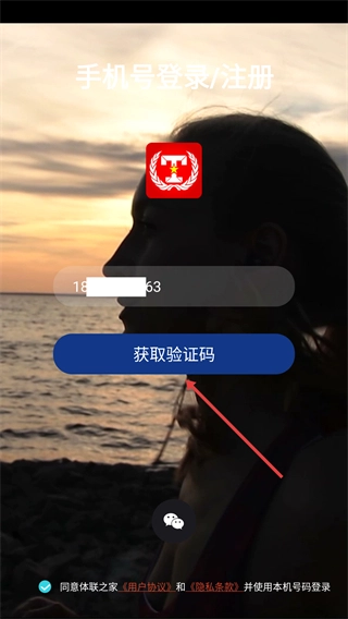 3、输入手机号码后,点击【获取验证码】按钮,获取短信验证码。