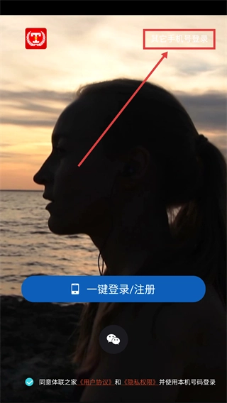 1、点击【其他手机号登录】选项,即可进入手机号登录或注册的页面。