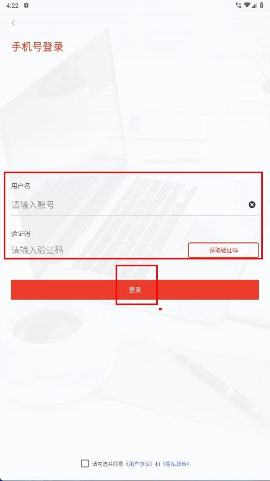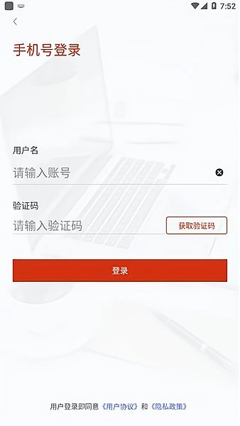 2、在手机号登录界面,输入账号,点击【获取验证码】,填入验证码后,勾选同意协议,点击【登录】完成验证。