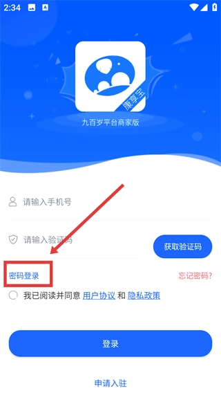 2、在登录页面,点击【密码登录】选项,切换到密码登录模式。