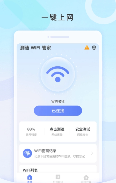1、界面简洁:测速WiFi管家拥有简洁明了的用户界面设计,功能分类清晰,便于用户快速上手操作。