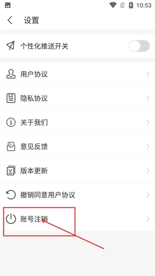 2、在设置页面找到【账号注销】选项并点击,该选项用于发起账号注销流程,需谨慎操作。