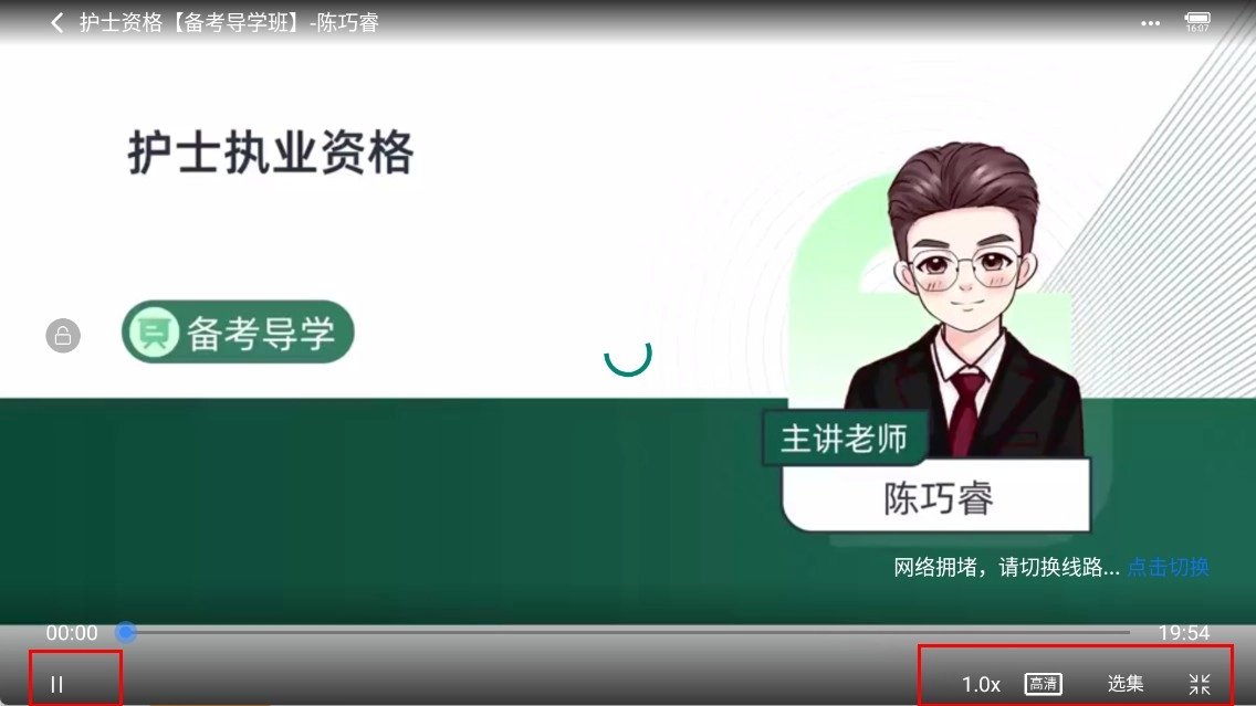 3、在课程播放界面,可控制播放暂停,调整播放倍速、画质、选集等,若遇网络拥堵,点击切换线路保障播放。