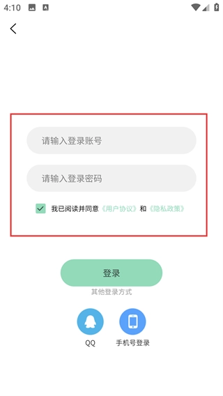4、选择【账号】登录后,需在对应输入框填写【请输入登录账号】和【请输入登录密码】,勾选协议后点击【登录】即可。