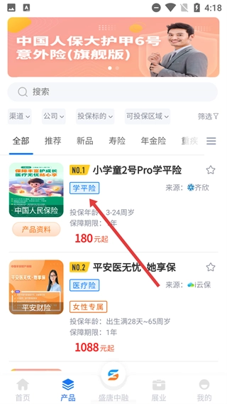 2、在产品页面选择“小学童2号Pro学平险”,进入产品详情页面。