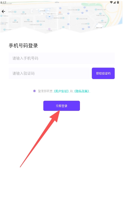 1、在登录页面输入手机号和验证码,随后点击“立即登录”按钮,即可完成账号登录操作。