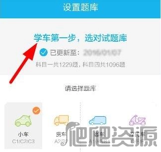 车型设置:选择车型,题库会自动切换至所选类型的驾照题目。
