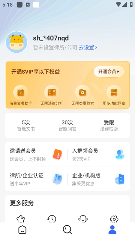 法智AI简称法智,是一款便携的掌上AI法律智能助手。进入法智AI正版首页,就能看到它提供的全部服务,主要功能涵盖问问题、找类案、查法规三个板块。你可以自由选择法智的各项服务,输入关键词后,AI法律助手便能迅速为你提供精准的法律服务,以及详细的案例和法规条文。