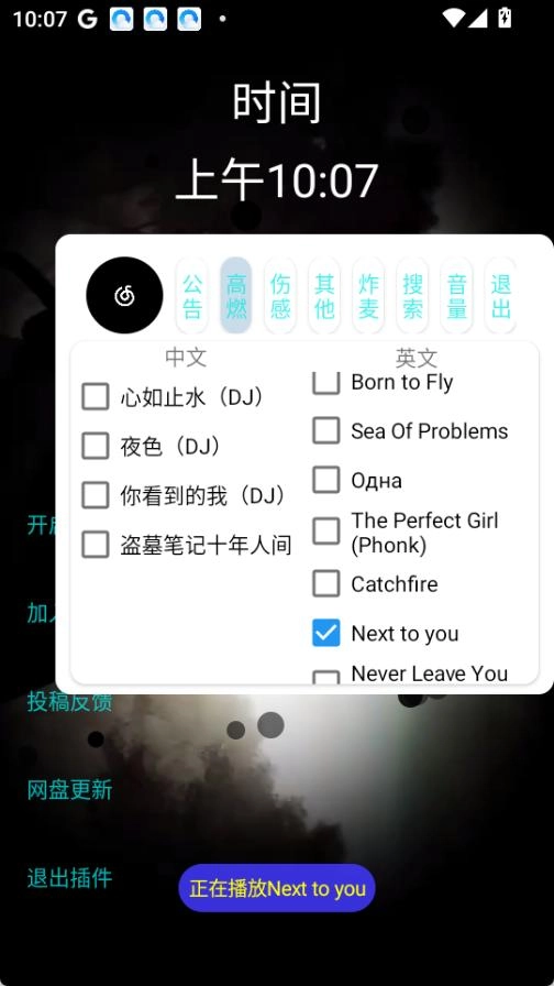 3.在弹出的菜单中选择自己喜欢的音乐分类,进入到听歌模式