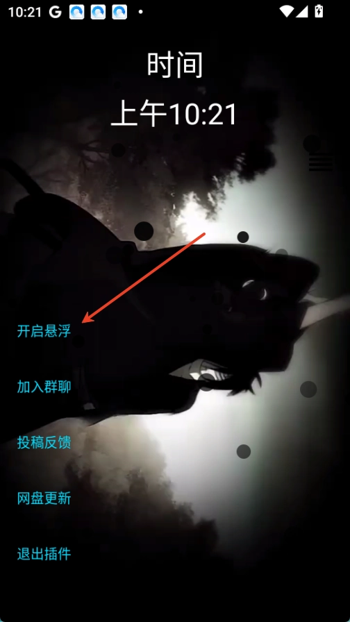 1. 启动音乐插件,接着点击开启悬浮功能,并授予悬浮窗权限。