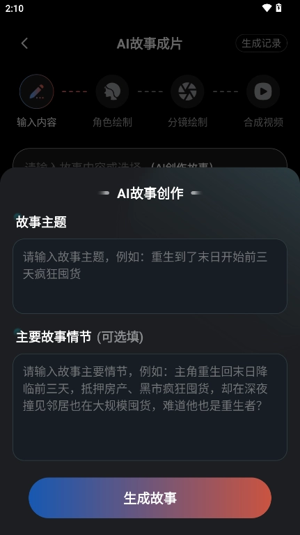 6、也可以选择AI帮您进行故事创作,更加方便快捷