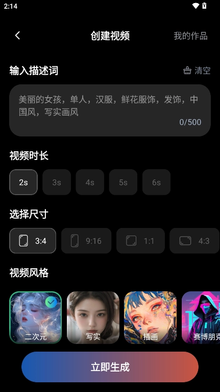 4、在创作页面,用户输入关键词就可以生成优质的视频了