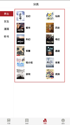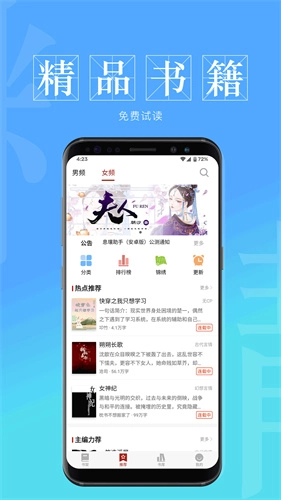 2、在推荐这里,有男频、女频、漫画、听书、分类、排行榜等。