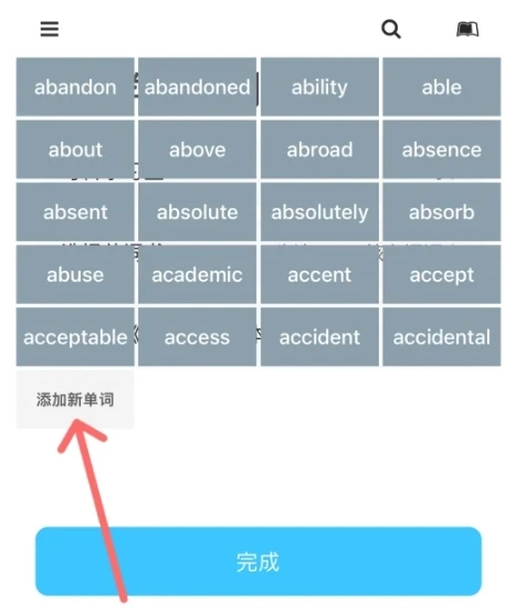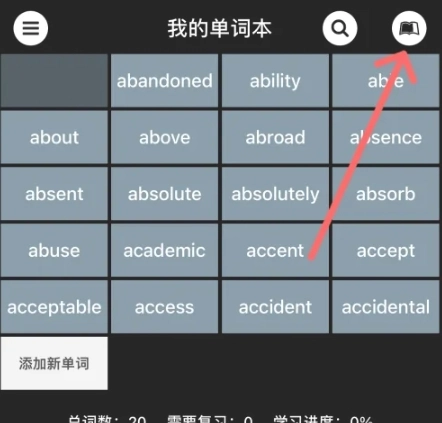 1. 打开并进入应用程序,点击下方的【添加新单词】选项。
