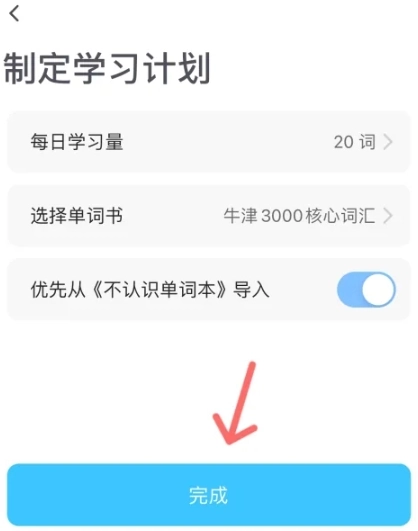 4、在学习计划中,定制学习计划,点击【完成】即可