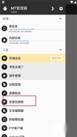 3、在弹出的页面中,找到并点击“安装包提取”选项。